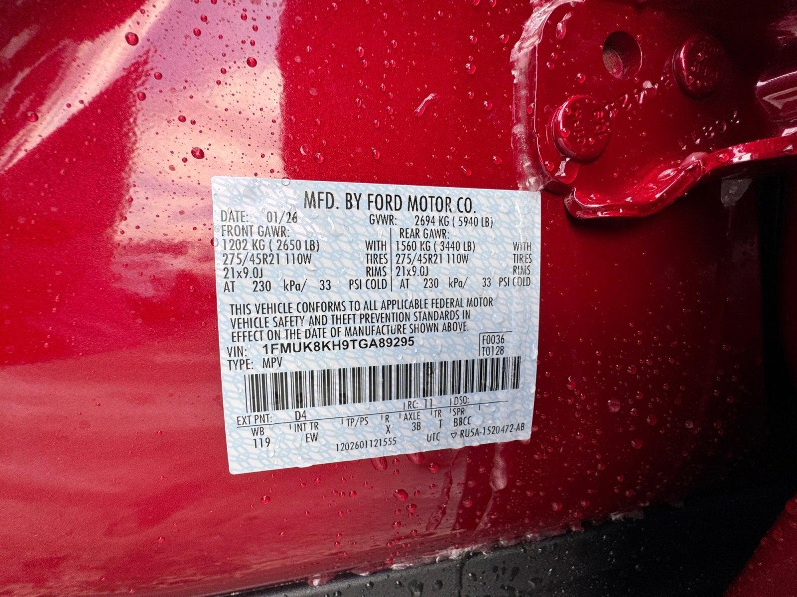 - Rear Tire Size: P255/55VR20