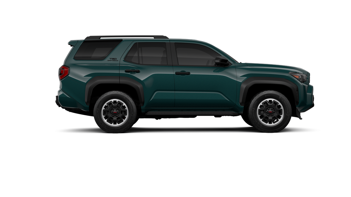 - Black honeycomb-style grille, mirror caps, door handles and overfenders; color-keyed rear spoiler; black "TRD OFF ROAD" and "4RUNNER" badges