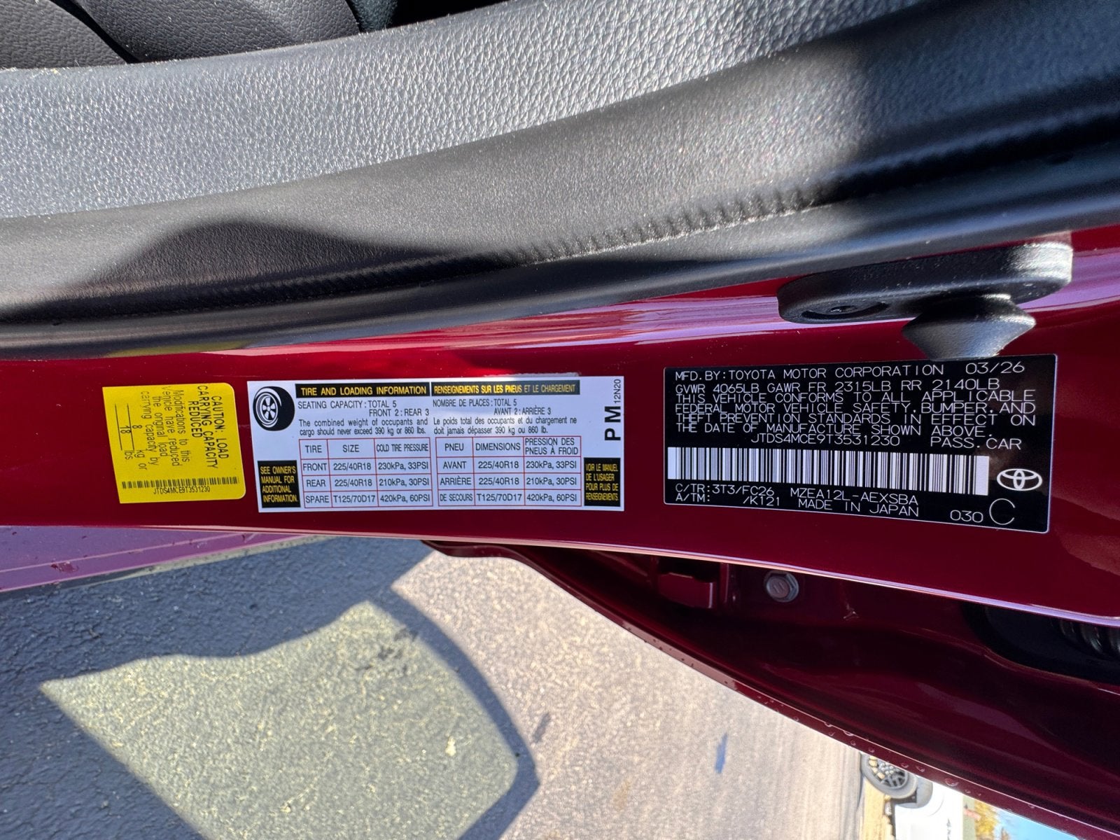 - Front Tire Size: P225/40VR18
