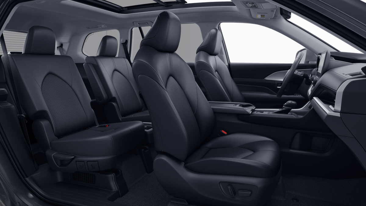 - 7-passenger seating with second-row fold-down captain's chairs and fold-down inboard armrests, adjustable headrests and two cup holders mounted on the floor; and 60/40 split, fold-down third-row seats with sliding headrests and recline function