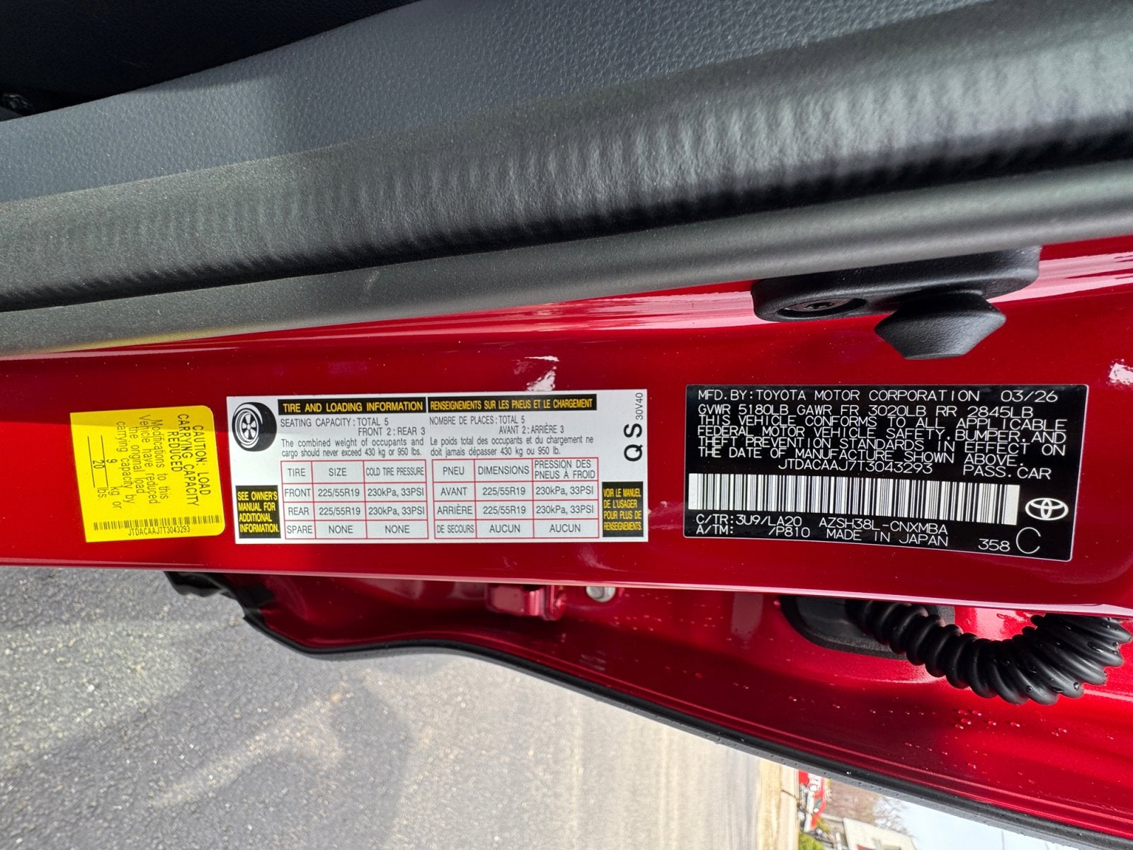 - Front Tire Size: P225/55VR19
