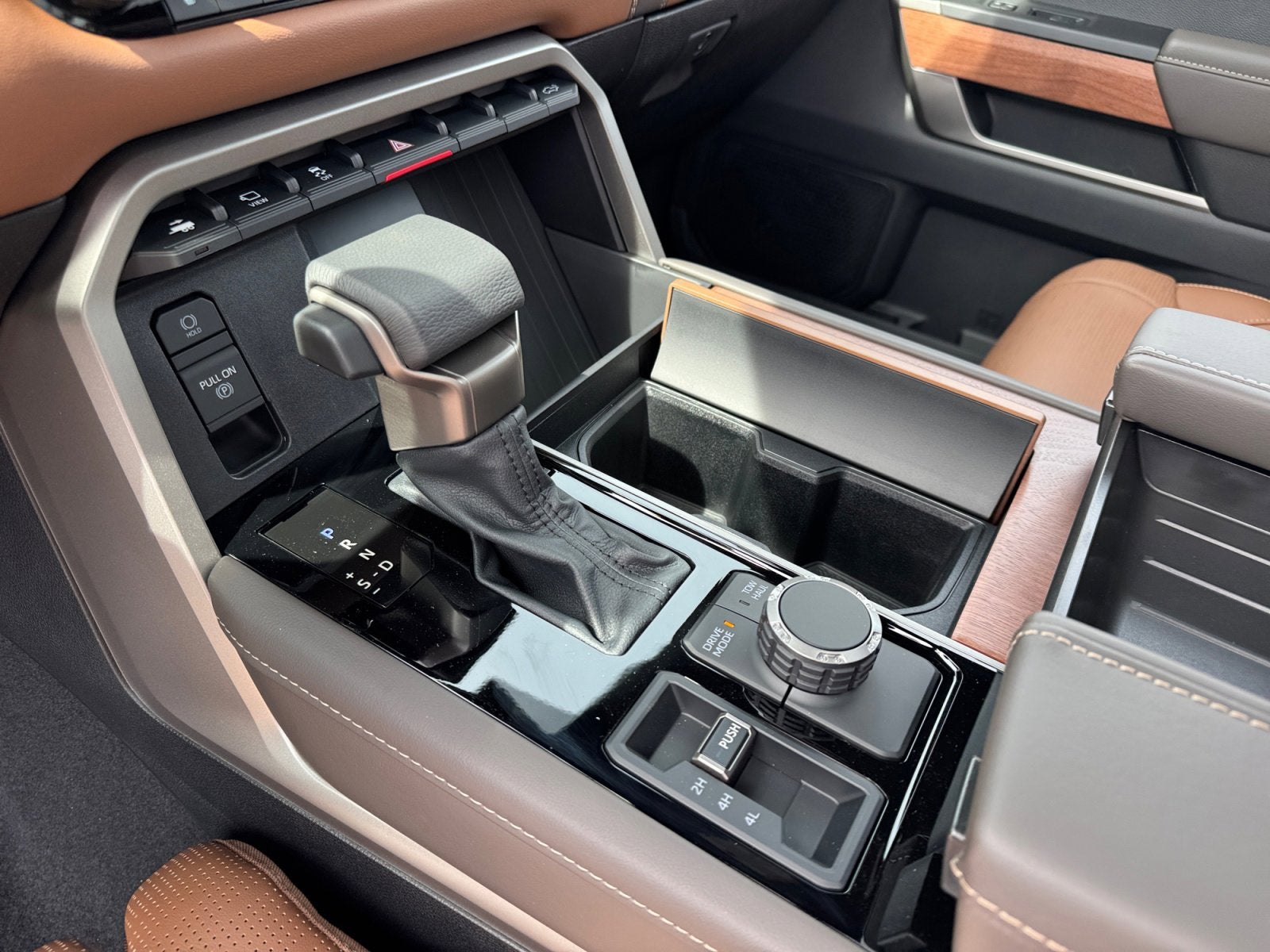- Leather-wrapped shift knob