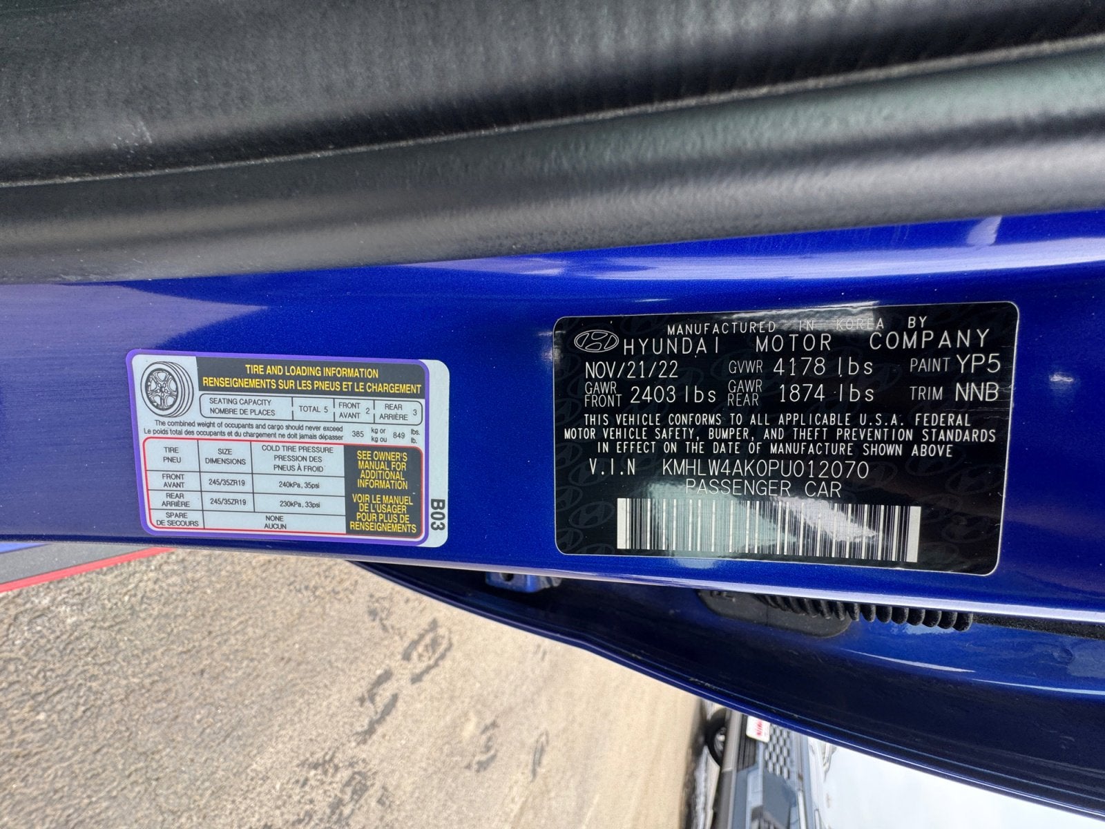 - Front Tire Size: P245/35YR19