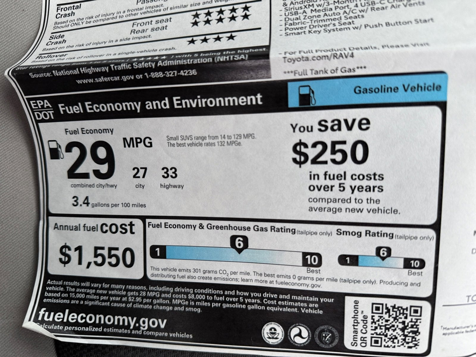 - Fuel Economy Est-Combined (MPG): 29