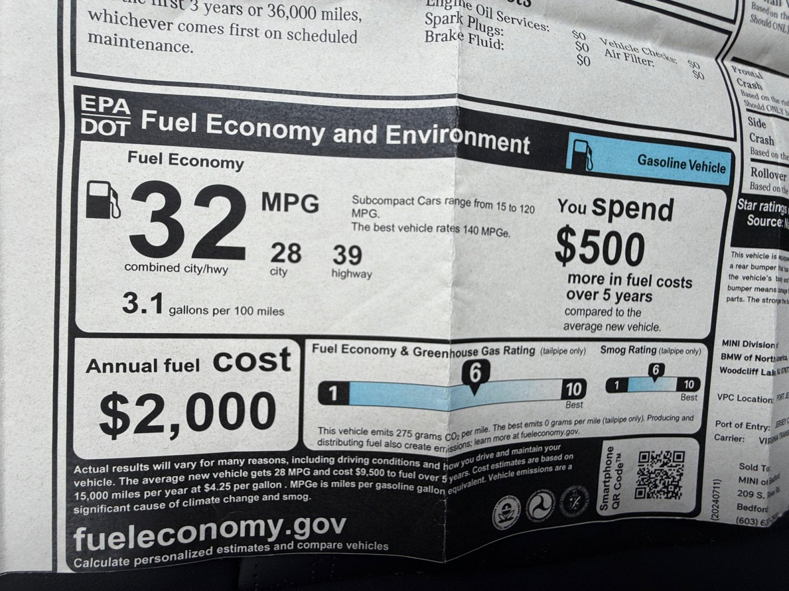 - Fuel Economy Est-Combined (MPG): 32